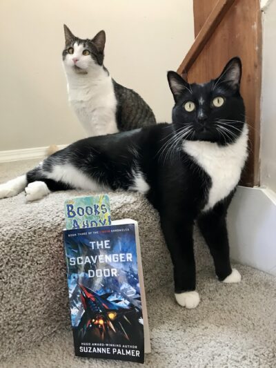 Fergus is always great, but the supporting characters are fun too. His sister Isla accompanies him on a few of his side quests, getting a feel for her legendary space-trotting brother’s life, and how it’s not as glamorous as it sounds (there’s a surprising amount of livestock). The four-eyed, five-legged furry alien Ignatio, the pilot and science expert, is marvelous. I’m going to take up eyr habit of walking into a room and announcing the desire to “have many snacks.” When Fergus goes to a shop of Curiosities and Inconveniences, Ignatio waits in the car. “I would like some curiouses, but not any inconveniences. Please proceed while I decide, and if there is also murdering or calamity or raisins, you will yell right away, yes?” Detective Zacker, an enemy-turned-ally from a previous book, also shows up, as well as some other old friends. I don’t think you’d be too lost starting with book three if that’s the one that calls to you, but you’d probably be better off starting with one or two (I started with book two, and it’s all turned out fine).