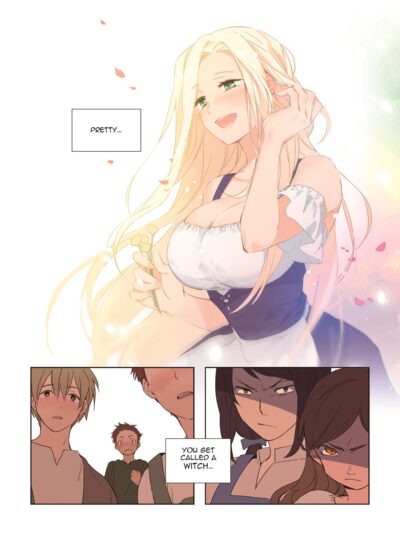 Oh, that Witch of Mine! The things she knows, does, and teaches us and the characters of the first volume of the Haeyoon and Mas manga graphic novel. You learn she is a witch, do not know she is the sister of the scape goat of the village (until later, then in the “all witches are sisters” way), pretends she is the mother of a younger boy and her familiar (a girl child in their cat-human form), and later she becomes the lover of that (adult) boy, who then he dies. Again, and again.