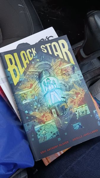I read an interesting graphic novel. There are interesting illustrations that support, compliment, and become its own character. The equally interesting text can be taken “as is” and straightforward, or you can look for a deeper meaning. This is not a onetime read, as there are several parts and a few layers. What is this graphic novel called? Black Star by Eric Anthony Glover (or Eric A. Glover or Eric Glover depending on what source you are using, and since the book uses Eric Anthony Glover, I’m going with that.)