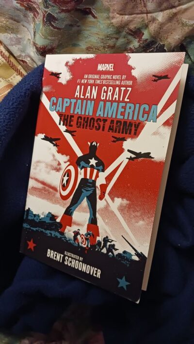 When you are tired and really have no brain power, but you want to read, what do you do? I tend to pick up what looks like an easy graphic novel or picture book. This time I picked up a what looked like an easy graphic novel. And while there was not a lot of “Deep Thoughts” to Captain America: The Ghost Army, it was not as “fluffy” as I thought. But then again, I should have realized that Alan Gratz would not write “fluffy fluff” but would write serious and fun with our favorite Captain (or at least up there in the Top 10 to 15). This is a fun, adventure graphic novel. It is different from the Marvel movies, and I am not sure how close to the original stories.