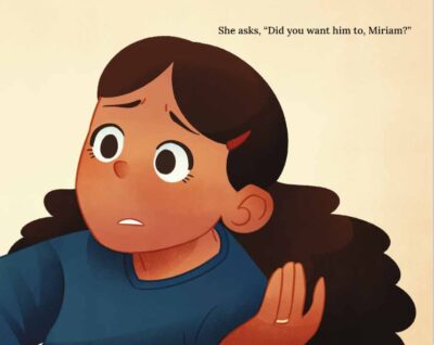 The story (coming mid-September 2023) that Zehava created is simple. Connor kisses Miriam. She does not want to be kissed. And she tells the playground monitor, who tells her to play “over there.” Her best friend says, “Ew” and the teacher moves Miriam’s seat. Her bus driver thinks, “puppy love,” and her mother asks, “Did you want Connor to kiss you? No? Then you tell him that.” And yes, it is a case of Connor likes Miriam and really it is innocent, but of course, if she does not want a kiss, you don’t kiss!
