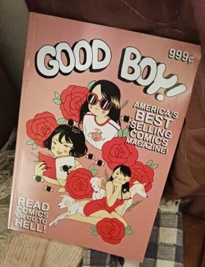 If I do read Good Boy Magazine #2, I will find it through my library, but something tells me that I won’t. If you like Mad Magazine on crack, this is for you. Also, if you are interested in zines, or graphic novel artwork this would be an interesting study. It just was not for me. And I will investigate Girl Juice just by Benji Nate (due late May 2023), as something tells me I like Nate, but just their solo works.