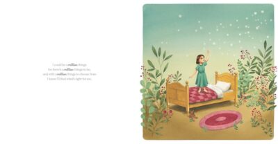 If I could be anything I think I would be a wombat. After all they have cube poop and are bad a$$ (literally, they can injure predators with their butts). But that is not exactly what I Could Be a Million Things is about (I just wanted to mention how cool wombats are). This is more about the things around us, the importance of those things, and the inspiration we can get. It is about a world of possibilities. There is a bit of thoughtfulness, meditation and spiritual without being preachy or over the top.
