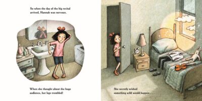 Hannah loves playing violin, but not in front of people. Of course, she has a recital. On the day of, Hannah wishes for Something Wild to happen. And due to some wonderful imaginative situations, the laughs (and some well needed inspiration and self-confidence) happen. Molly Ruttan has created a tale of cleverness and overcoming stage fright in a fresh, vibrant, manner. Story and text mix together to create magic and humor.