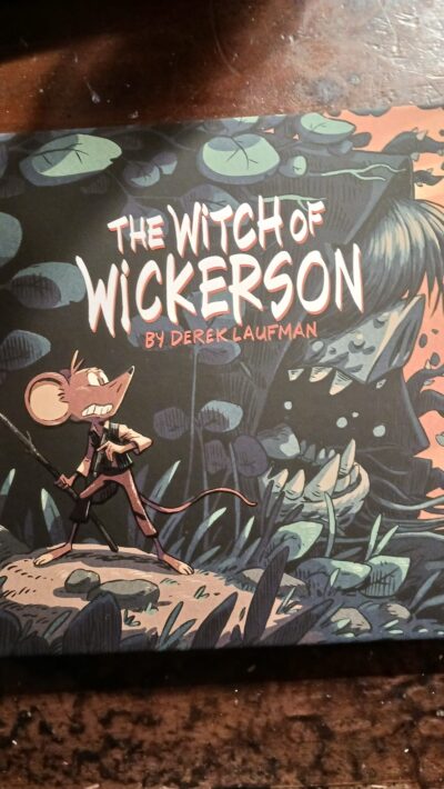 The Witch of Wickerson by Derek Laufman is a fantastic book with amazing illustrations and a clever story. I could see a series and/or a movie or animated series adapted from it. While it has twists and turns, and can be dark, it is a slightly easier and less intense than Redwall. The adventures are based in fantasy elements (a mouse wearing clothes, talking animals, a witch) can be intense for young or sensitive readers. And there is the kidnapping of the heroes son, plus what the witch plans on doing with the villagers she takes and especially what she has planned for the son (think Hansel and Gretel on all accounts, but the mouse boy is a little more important), that is not for everyone.