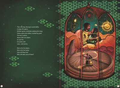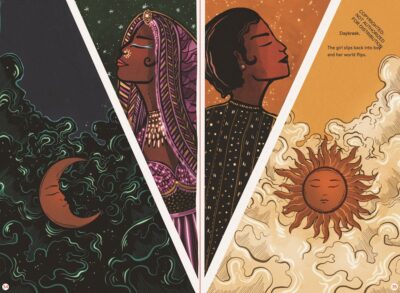 Which I assume Svabhu Kohli wanted to do with the illustrations. They are the reason I was amazing and said what a beaver builds. They are rich, lush, colorful, dark, but filled with light. The publisher description says the art are jeweled tone colors. They are also terribly busy; and you cannot get everything all at once, so take your time and enjoy. Do multiple reads, multiple artwork viewing and buy copies for yourself, family, and friends.