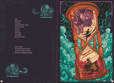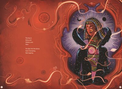 Having become interested in this person Jyoti Rajan Gopal was writing about, I learned that he had a very short life, dying in an accident. He left behind a wife and two children. There is not a lot of this kind of historical information (there is some pieces in an author’s note), but the highlights are touched on in the story. And they are done in a lyrical, poetic manner. I am assuming Gopal was trying to make their text match the flow of dance.