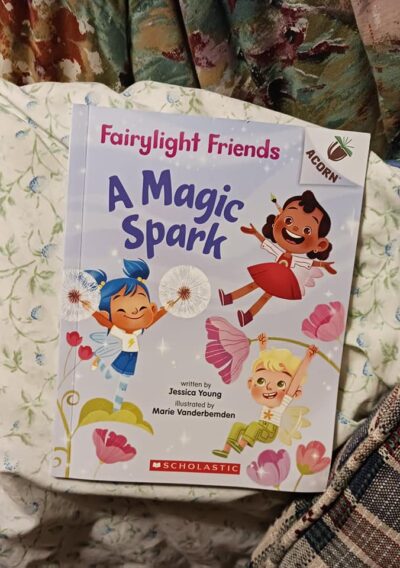 I was about halfway through the first story in the Fairylight Friends book (by Jessica Young) when I said, “This seems familiar. Oh yeah, I’ve read it before.” No big deal. It is what? Twenty pages? If that? I will say I am glad I finished it and not relied on the vague remembering of it was only “okay.” Now, no this is still not OMG BEST BOOK EVER! But it is a cozy story of three fairy friends and finding the special thing that makes you, you. It is a cute story about friendship, finding your talent and having fun. Modern, diverse fairy characters, and personalities (pinks for the “sweet one” and yellow and green for the “earthy one”) are shown through the illustration of Marie Vanderbemden.