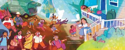 As a cousin, I compare myself to books about cousins. And while me and mine did play and have ice cream, we did not do it the way this family does in Summer Is for Cousins. But it does not matter how you spent your summers; you probably can relate to Ravi’s family. He is the almost youngest (there is a new seventh cousin to his sixth place), he admires his oldest cousin, and he likes sharing ice cream time with all the cousins. The idea of the story is simple, we follow Ravi and the cousins doing summer cousin things in boldly colored, simple illustrated artwork. And we see how Ravi is growing, changing (he now can use the tire swing) and how the others are changing too (his older cousin has a deeper voice) and this makes him excited and shy. But in the end, it does not matter how much you change, favorite ice cream flavors and cousin time does not. Rajani Larocca’s text and Abhi Alwar’s illustrations show how summer and family can be special.