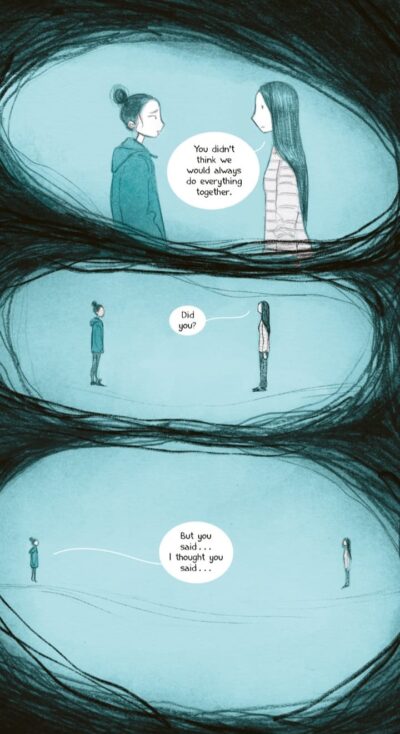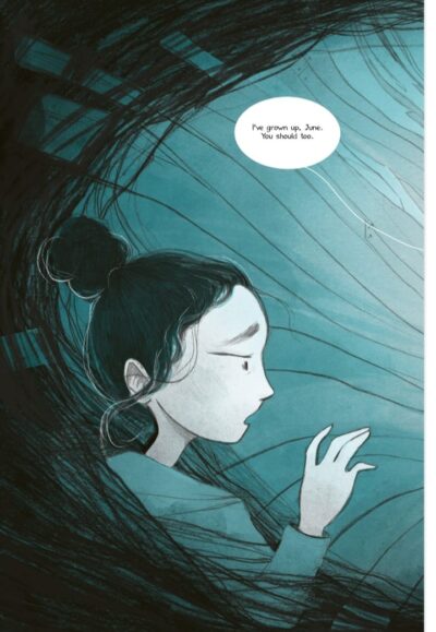 There are mature themes, and some images, can make this not for the young or sensitive reader. However, it also has some of the most amazing illustrations I have seen in a while. They are lush, flowing, the color use (or lack of) is the piece that allows the theme to come through. The main colors used are yellow, blue and some orange-reds. They are both detailed and minimalistic. They are truly artistic and probably there to represent things as if June was telling us the story in a journal. The only way I can describe them (as the cover does not do justice to some of the ones that show emotion flowing) is they are of a bittersweet hopeful quality.