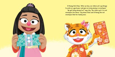 The illustrations are brightly colored and drawn not photographs/real like it was directly taken from the show. This is a good book to add to your child’s collection of worldly books, but also just a fun one to adapt to younger children with asking things like, “What is red?” or “How many eyes do all three have?” Or even, “Which character has a tail?” Perhaps my favorite piece of information was the fact that Lily’s family gives her a red envelope with lucky money and Ji-Young’s envelope is another color.