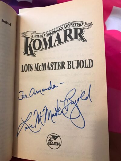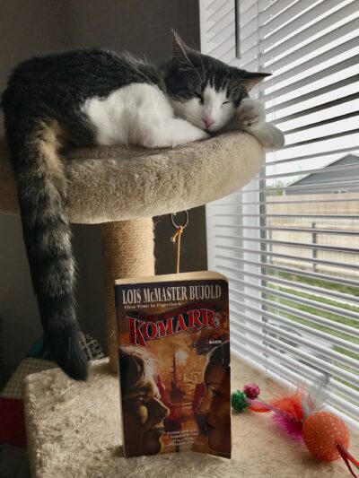 A friend finally finished all 900 Wheel of Time books, and asked me about the Vorkosigan saga, which he knows is my favorite. I gave him an enthusiastic nutshell overview, and about three different suggestions for where to dive in. (The internet told him to start chronologically, with Falling Free – bah!) He started with Shards of Honor, and loved Cordelia as much as any sensible reader does. I told him Komarr was one of my favorite comfort rereads, and to let me know when he got there so I could read along with him, and here we are!