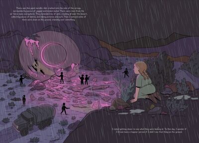 The story is one of belief, love and finding that sometimes believes in not as easy as you think. Out There (a graphic novel) by Seaerra Miller talks about that and more. Not so spoiler-spoiler, Julia must decide what is real, what is important, and to wonder if what others think about you is one of those important things.