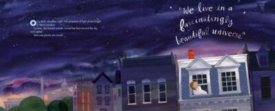 What is dark matter? Well, if you are looking for an answer, you won’t exactly find it in Shining Star: Vera Rubin Discovers Dark Matter. Instead, in this picture book (due November 2023, and yes, I read it via an online reader copy) you will find the biography of Dr. Vera Rubin, a young girl who in the 1940’s said, “World. I’m going to study the stars!” And she did, all the while raising a family and facing discrimination. Her studies, ingenuity, tenacity, and a picture of a woman in a shirt on a bathroom door would take her far. So far in fact, she would see how the stars moved, what held things together, and much more. From a homemade telescope to some of the greatest universities and observatories, Rubin made history.