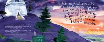 And Suzanne Slade uses their text, as well as Rubin’s own words, to illustrate these accomplishments. And speaking of illustrations Susan Reagan did some artwork that could almost be said to be out of this world. Still, it is grounded here on Earth. The colors match the eras Rubin lived and work, the places she lives and studied, and showing the wonders of space. Things are rich, busy details and moves things along at a steady pace.