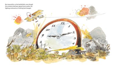 I want to just put a billion tears on this review for The Eleventh Hour. OMG! This book is NOT for the sensitive reader. It is a picture book (due in paper mid-August 2023; read via an online reader copy), but I do not know one child I would give this, too. With that said, it might be an interesting book for a classroom doing World War One or Canadian history, or for any Veteran’s Day events.