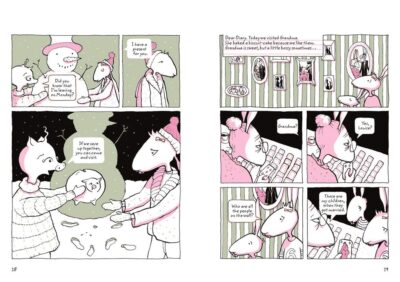 The MAUS like taking of animals into human forms is both a plus and minus. The plus is it gives a “separation” from the reality, but the minus is the stereotypes (one of the lesbians in a bar is a “big bad scary alligator”). This is a “what is your personal okayness with this kind of representation”. Sometimes things can get a bit surreal and even at times oddly “off putting.” This is not for everyone but is a strong story that we do not usually see.