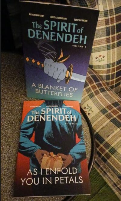 Perhaps the most important thing is to read volumes one and two together and in order (plus, if you find volumes three on, please let me know). The world of the people on the pages comes to life. The hopes, dreams, past and even future. As we follow the characters to a conclusion both satisfying and frustrating, things can be a smidgen disjointed. It feels as if we have started in the middle of things, yet, you keep moving along. There is an outsider who has come to the town to retrieve a piece of his family’s past, but finds himself intertwined with the present of the village. The mixture of First Nation and Japanese cultures seem to not be relevant, but are more alike than different. It is not a quick read though it is easy to read on the surface. The art is what drew me in. A Blanket of Butterflies is both a darkness and lightness combined. It can feel coarse and smooth. And is emotional but matter of fact. Strong triggers with violence and some racism occur..