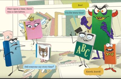 Read via an online reader, due mid-September 2023, this book has some fun illustrations. You see the stuffed animals giving side-eyes, and some little hidden things. And later, when more books show up, with their own themes, stories and personalities, getting ready for a reading-aloud time, there are some fun things about them as well. .