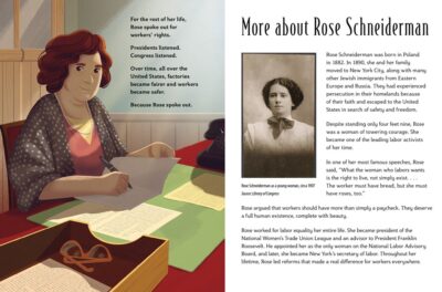 From science to history, we follow a Jewish immigrant from Poland, Rose Schneiderman, in the story Rose Spoke Out: The Story of Rose Schneiderman. Emma Carlson Bene took on a subject that probably few know. But that is not because Rose did not have a “big mouth” or as she liked to say, “a loud voice.” This little over four foot woman would change the way workers were treated, how safety would change and when things were not right, she would not stand for it. There is also information on the idea of tikkun olam, repairing the world, a core element of Jewish tradition (taken from the publisher description). While reading how the expression “bread and roses” came about, you follow this all with the marvelous illusions of Giovanni Abeille. Their work pops off the page in color and busy excitement. Currently out, Bene’s book was probably my favorite of the two, but honestly they are both strong additions to anyone’s library.