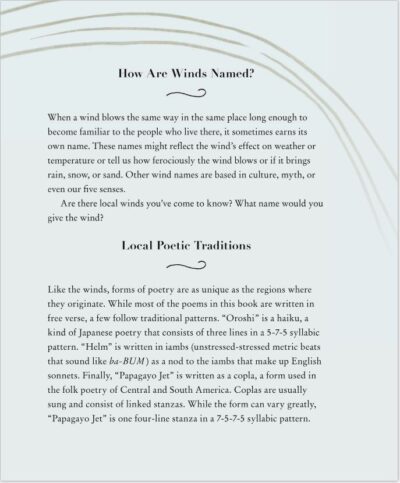 Several extras are included at the end, as well as a quick paragraph on the page of the poem that gives more scientific information to the poetic introduction to it in the poetry. Who knew wind could be so interesting, exciting and beautiful?