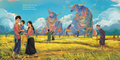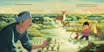 My Grandfather’s Song at first seemed like it was going in one direction, but it does a slight turn. The beginning seems more of how nature is wild and therefore for us to learn from, but the turn comes when the narrator shows us how everything is connected and respect is given to the wild. We see all this with how the narrator grows. You will learn that this story (almost in a folktale/folklore format) though set in Vietnam, you see how the native populations have similar values around the world. The author, Phùng Nguyên Quang, includes extras that are a delightful addition.
