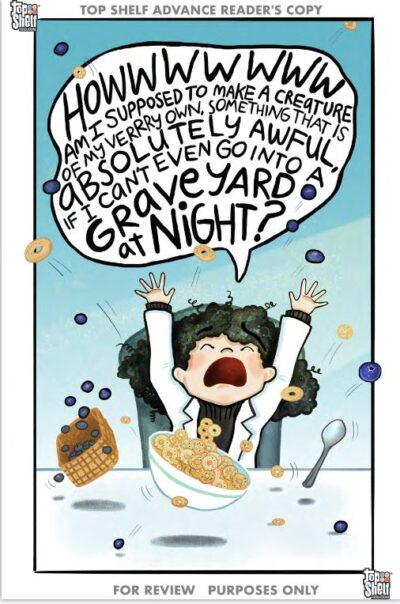evilest monster ever! After all, people love being scared (in fact, she cannot get enough scares! Does not matter if it is a book or movie, you name it, she wants to be scared by it). Though her kid brother, loyal, sweet and the perfect Igor to her Doctor, tells her that maybe she is not exactly right. But though she does not (at first) listen, he is right there with her. Right up to the day one of Shelley’s experiments finally does scare the kids and the consequences are serious.