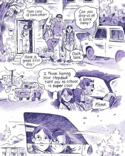 The book follows Tegan and Sara as they start Junior High together. They have to have classes separately, make new friends, and come to terms with growing up. This book is such a gem in terms of realistically capturing what it’s like to be a young teen, enter a new school, and simultaneously be going through the upheaval of puberty. The emotions are very truthfully conveyed and Walden’s art is adept at this as always. She is such an amazing artist and every book she does is a gift. I love the color palette here and how she differentiates the twins by color while making purple the dominant tone. It just reads so clearly and effectively. The story arcs of them making different friends, coming to realizations about sexuality, and fighting with each other all work together without becoming confusing and overwhelming. The friendship drama especially was very realistic and I remember how intense those emotions were, which Walden does a great job of showing. All in all, this is such a great book and I highly recommend it to any young teens (12-14 ish) or adults who love graphic novels. It’s a real masterclass in the power of art to convey emotion and story.