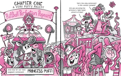 I was not the audience for the book, The Sparkle Dragons (The Sparkle Dragons, 1). However, I know a lot of girls ages six to about nine who will love the pretty dragons, the bratty princess, and the (probably) evil unicorn (okay he is SO the evil genius of the book). The story is both typical (magic and adventures) and modern (dealing with an environmental issue and civil rights). The illustrations were minimal colors (mostly pink and gray) that made finding the structure of places and even people/dragons/trolls difficult. But I give it a 2.5 for effort and the puns.