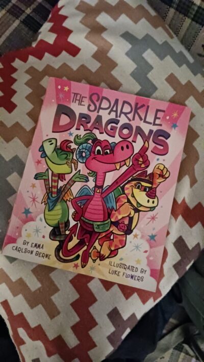 One of the fun parts I realized after looking into Luke Flowers’ other titles, even their Mister Rogers books seem to have a similar look to them, but each one is different. So if you like sticky glitter bomb sneezes, Troll named Robert (not Bob) and some off-the-wall (and out of the box thinking) fun and unusual but sweet illustrations, you are probably in for a treat with Berne’s Dragon series.