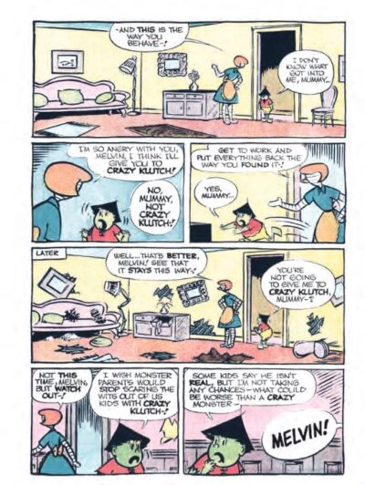 Then I read a bit more and learned that yes, this is a collection of the 1960s original cartoons/comics. Marketed towards adult, this is not really for teens, but in this day and age, what happens is pretty mild compared to the edginess it would have been in the original era. If you like that “Daddy (or Baddy in this case) does NOT know best” and “Mummy” is a bit too wrapped up in being a good wife/mummy and a smidgen clueless, then this is it. You just need to wait until mid-October 2023 for the collection. But I will say if you do not like “old school parenting” (Baddy tries to spank Melvin; pulls a “if you do that again, I’ll give you four stars to look at” threats), then don’t.