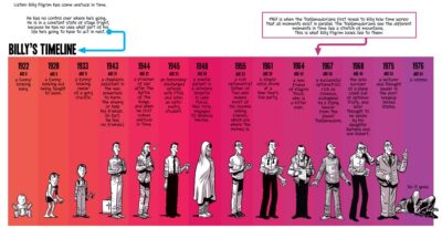 I was left with a lot of questions because that “too much and not enough” theme of the illustrations follows throughout the story itself. Are there “good guys” and “bad guys?” And would we agree on who is who or if there are any “good guys” at all? Why did that photograph make the rounds? Who were the children of Pilgrim? What about his wife? And that is just the start. I am still not sure if I get the draw of the novel, but I do appreciate the work Vonnegut, North and Monteys put into things.