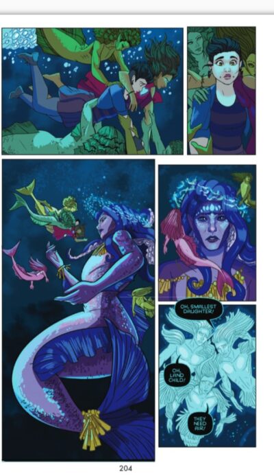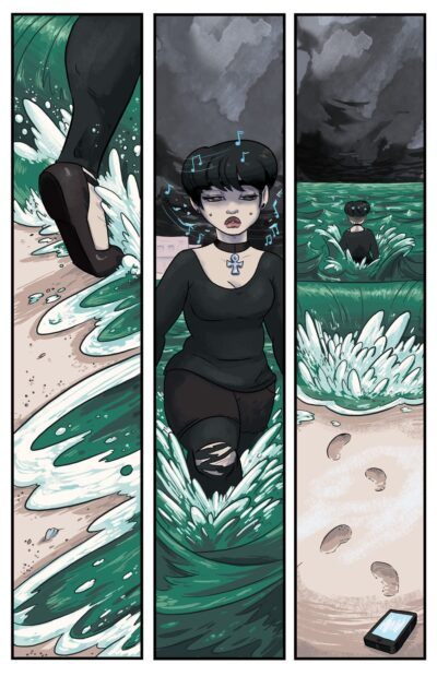 This is my seventh read from Iron Circus Comics and I have a few others on my TBR. These books run the gamut of different styles, but all are edgy and interesting. The Sea in You is a bit younger than the others, but not for sensitive or young readers as there are images of mental and physical abuse, there are tense real and fantasy scenes, and while I am sure that teens have read and/or seen worse, the concept might be a bit “much” for some readers. With that said, I am comfortable with saying ages 13 and up would be good.