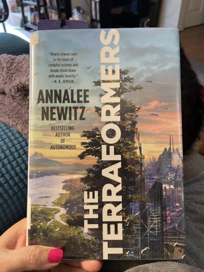 Newitz does SO MUCH with this premise. They explore big topics – personhood, environmental responsibility, government systems, evolutionary systems, ownership, gender, family, compromise, history, bureaucracy – with flying moose and sentient doors and cities hidden in volcanoes. I was freaking delighted the entire way through. They came up with concepts I’ve never heard of, woven tightly with a vision of cooperative living among all species (organic and synthetic) that I find inspiring.