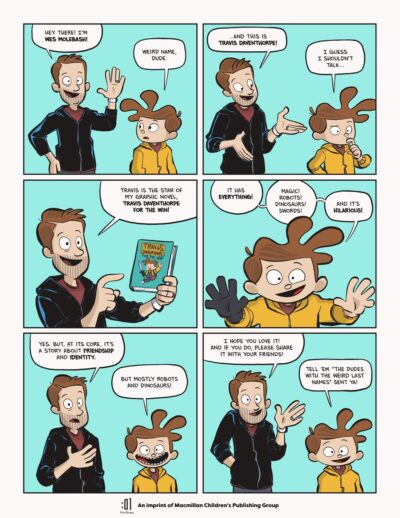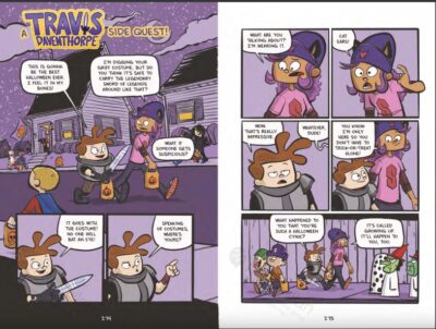In the idea of the Judd Winick’s Hilo adventures, but with a bit more “weight”, yet equally funny, magical and scientific, we have Travis Daventhorpe for the Win! Volume One. Good for ages 8 to 11/young12, this book has all the fun of robots, dinosaurs, friends, bullies, wizards and dodgeball! (Okay, dodgeball might not be fun, but the scientific experiments Travis does are.)