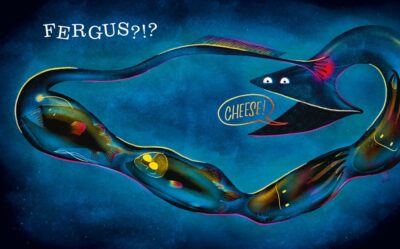 Many creatures are afraid of the dark, but in Who’s Afraid of the Light? we get the other side of the story. We go deep into the darkness of the ocean, where we find so many different creatures. However, because it is pitch black down there, the dark is safe for a friend our narrator makes. So, when we find light, we know danger is coming. Or, is it? Meeting a few creatures such as the anglerfish and vampire squid. In a young format we learn a little something about each one. And in the end, our friend, Fergus to be exact, has a surprise to let us in on.