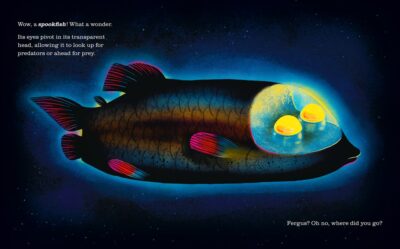 Everything is funny and yet, we can learn. There is a short afterwards that gives more information and at the beginning and end of the book there are two seagulls you want to keep your eye on, not to mention a few other critters at the start that you must take the advice of to get you where you are going. Plus you might learn about a new animal, like I did with the spookfish and a Fergus! Great for a classroom, library or your own collection. Great for science lovers or to get them started in non-traditional animals.