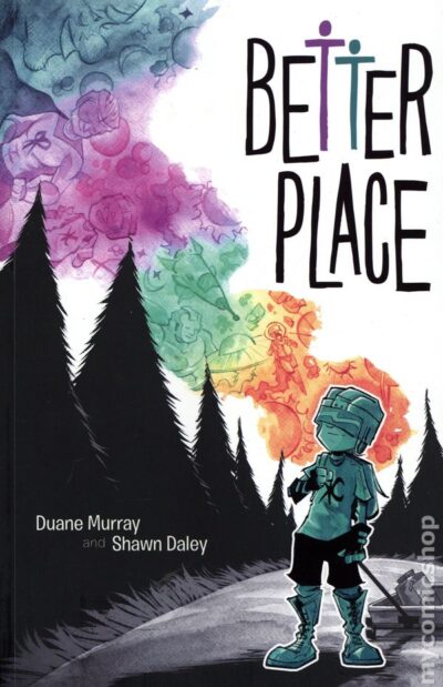 I thought that the graphic novel, Better Place by Duane Murray was about a kid who played hockey. Maybe he would have some problems in school, some bully or something, but nothing overly serious or we had not seen before. But then we find that the mature theme of death is put into play and the child, Dylan (of cover fame), is not your average hockey player. In fact, hockey is far from what he does. He and his grandfather are not just two peas in the pod, they are the whole deal. And after the grandfather is killed in an accident, Dylan takes the journey to find him, as he was told Grandad went to a “Better Place” and in his kid mine he sees (not there really) clues to where he would be. There is also the story of his mother and how she is a single parent of basically two kids. The grandfather is not “losing it” yet, he does not always think before he acts. However, there have been issues, and enough of them to warrant looking into a nursing home.The realism of things is not really for kids. The fact the mother has a very realistic and understandably horrific reaction to things (the stress of raising a child basically alone, her father’s incidents, trying to work and be there for Dylan builds up into a very emotional explosion) might just make kids think “Mom is a big meanie” and not that moms’ grief of things we are not really privy to is so overwhelming she cannot process. But the other part of the story, Dylan’s antics and running away to find the Better Place kids will enjoy.