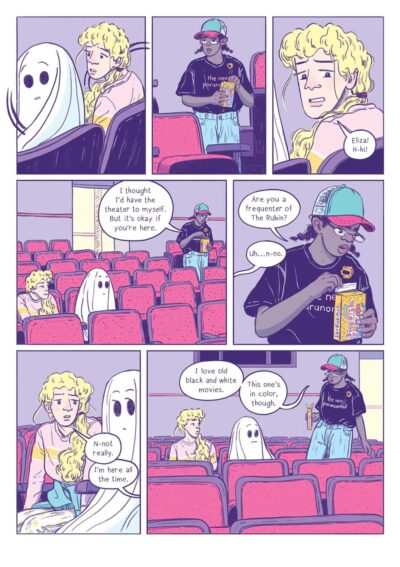 In both stories we see the real ghosts and the ones that haunt us internally. Volume one introduced us to real live (um…dead?) ghosts. They have issues, the humans have issues and together the two try to work things out. The real ghosts are perhaps my favorite part of the art as we see them represented by the stereotype Sheet-Ghost and that is a symbol in itself, especially in book two. This artwork is expressive and moves things along in ways text cannot. We see the expressions, the body language and how things around us keep happening. The art is their own character, while supporting the story itself.