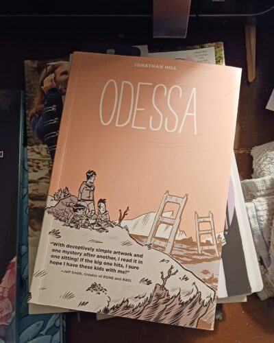 The only reason this is not a five is because the art was not always to my personal tastes, but works perfectly for the story and the cliffhanger ending made me want to throw the book (but it was a library book so I couldn’t). I still can’t believe that Jonathan Hill is the author/illustrator of Odessa, but also Tales of a Seventh-Grade Lizard Boy, and honestly that one person can create two equally good but radically different stories still boggles my brain.