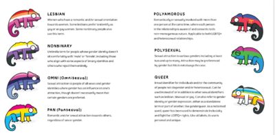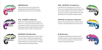 how that could work); along with abrosexual (yes!), aromantic (yes!) and demisexual (whoop!) added and not just lumped under asexual (which is fantastic, but it is, as we all know, nice to be represented).