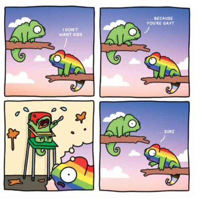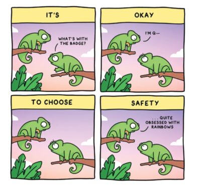 I might have seen Amee Wilson’s work online, after all the colorful chameleon icon is a bit hard to miss. However, I am not as familiar as I probably should be. Therefore, when I found Queer Chameleon and Friends I was both interested in and a little leery as books that have this message can sometimes be a bit pushy. Yet, why not start it?