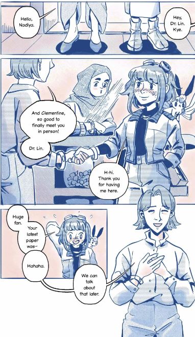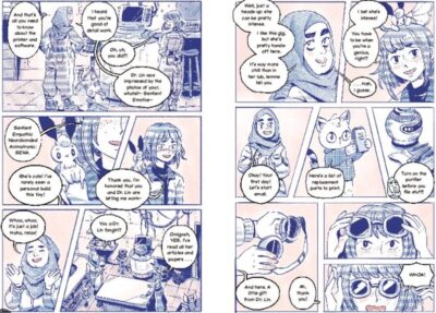 The Infinity Particle by Wendy Xu is an emotional graphic novel with layers that could be a bit “much” as we deal with a larger “cosmic” connection. The more surface level is the love story we have with ourselves and each other, the ideas of being human and humane, and most importantly, connections on a smaller scale that we find with others and ourselves as we grow. The illustrations are unique, but familiar. They give you what is needed, but sometimes you do need to fill in a few banks. A few questions were never answered for me, but that is okay as you do not need them, you just need to enjoy the entire package.