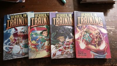 The Heroes in Training Graphic Novel series is adapted by David Campiti and based on the Joan Holub and Suzanne Willians novels for probably about second to fourth grade readers (going by the graphic novels). The myths of the Olympians are told in modern tones, with the original setting of some of their backstories (Zeus grew up on an island, Poseidon learns he is King of the Ocean) but they are not always true to the original stories.