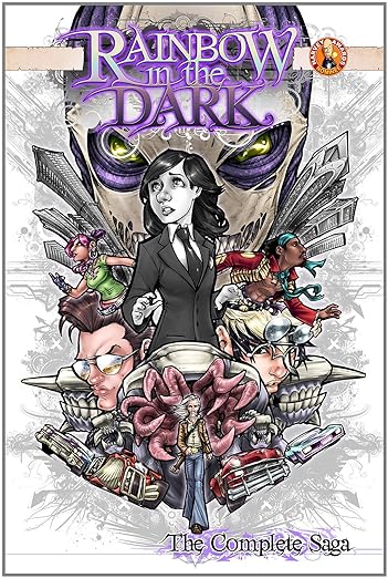 Rainbow in the Dark is chock full of messages of “peace, love and understanding,” and characters frequently quote music lyrics to each other. John Lennon’s “Imagine” has an important place here. It may come across as kind of “hippy dippy” but I found myself liking the overall message of the power of the individual, of the need to resist forces of darkness and conformity, and the idea that those forces — as strong as they might seem — are actually doomed to fail in the long run. I also liked the art in this book. Both Comfort Love and Adam Withers contributed to the drawing as well as doing the writing. The Gloom is drawn in black, white and gray, while the freed world is in full vibrant color. Characters have their own distinctive looks and the bad guys/monsters are suitable creepy. Rainbow in the Dark would be fine for teens and older and seems like a good read for anyone who needs a little encouragement during our own gloomy times.