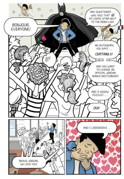Several pieces of information come together, and some are brushed over, or never felt completed for me. However, overall, if you like Jerry Craft’s other two books, go on with this and do a wrap of this chapter of the lives of Jordan and friends. There are a few plot points that I was not thrilled with, and at least one of them (the mix up of the chaperones going on the several school trips) was the biggest. I am assuming that the students involved had a reason from book two to do it, but the adult me did not find it amusing.