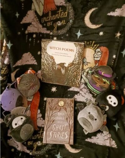 Which also goes for some of the text. One poem uses the slur for the proper term for a female dog. The thing is, it is perfectly fine for the poem, but it can be a shock as it seemingly comes out of nowhere. The poets range from X. J. Kennedy, James Reeves, E. E. Cummings, Eleanor Farjeon, Jack Prelutsky, Felice Holman, Karla Kushin and more. Classics (Shakespeare with an excerpt from the Scottish play) and more contemporary stories in poems (several of which are presented in rhyme) are mixed together on the pages. And while this collection would be good for Halloween, it really is an anytime book. Just probably not for bedtime.