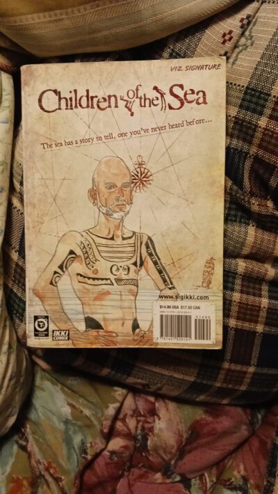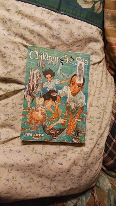 The Children of the Sea, Volume one is a typical manga illustrated graphic novel. It is sparse and not always expressive, or gives all the information you think you might be needing. Yet, there is something about it that draws you into things, and the story has enough teases to it, to make you (or at least me) want more. Daisuke Igarashi was new to me as an author/illustrator, but I am thinking I might want to look into The Children of the Sea series more. The story itself has us following the main character, Ruka, as she remembers the summer two boys entered her life and she was tossed out to sea, figuratively and a bit literally. A coming of age story that is not for everyone as things can be a tad abstract, have a folktale element, and sometimes can be a bit disjointed with story flow. The mixture of mostly black and white illustrations, with some having color, adds to the uniqueness and oddity of things.