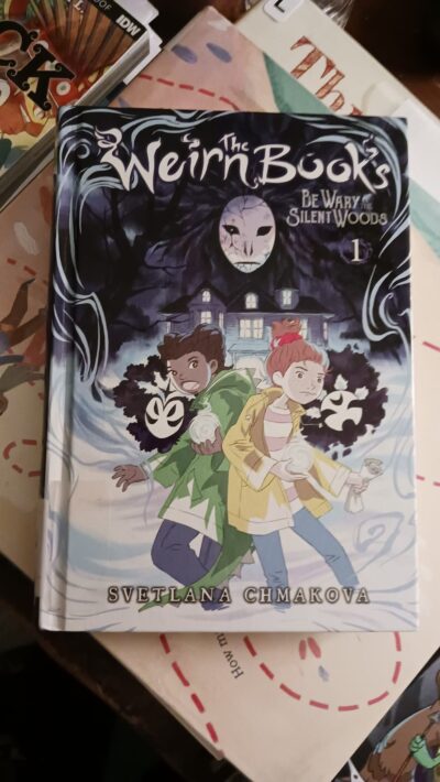All the usual suspects are there in Svetlana Chmakova’s graphic novel, The Weirn Books, Vol. 1: Be Wary of the Silent Woods, the mean girl (who used to be a friend and has a secret), the hottie (who is a werewolf) and the cute, (but sometimes annoying) little brother. Two cousins (and said annoying little brother) find themselves in the middle of a mystery that has tentacles deep into the past, and if not solved, could mean no future for the town. The illustrations are lighter than a “thriller/horror” story might be, but there are several spooky factors that might not be for the young or sensitive reader. A fun book, that is clever, familiar and just enough new to make it a little fresh.