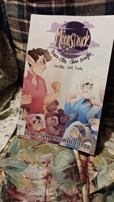 After I read about Teen Killers/Assassins who are now in love and going on a Bonnie and Clyde-like spree (only, you know they are the “good guys””) I needed a little humor and read book two of the Moonstruck graphic novels. Moonstruck Volume 2: Some Enchanted Evening by Grace Ellis and illustrated by Shae Beagle and Kat Fajardo was that humor.